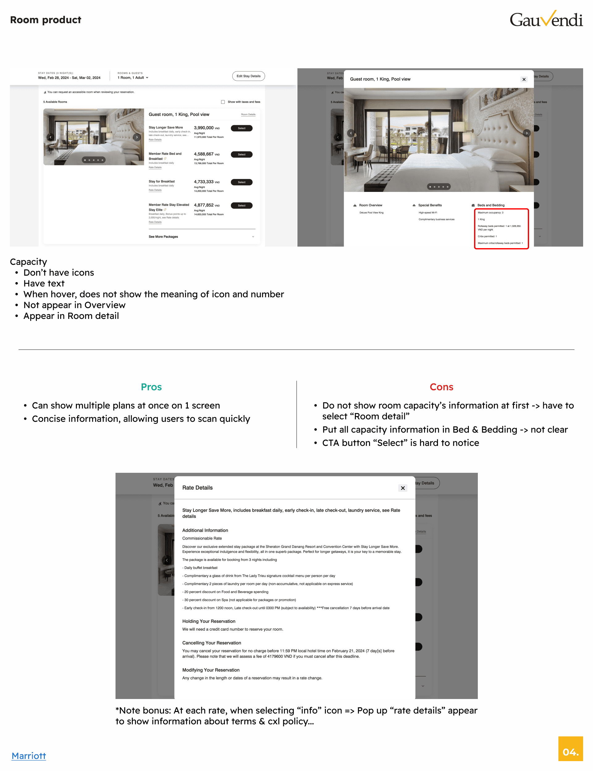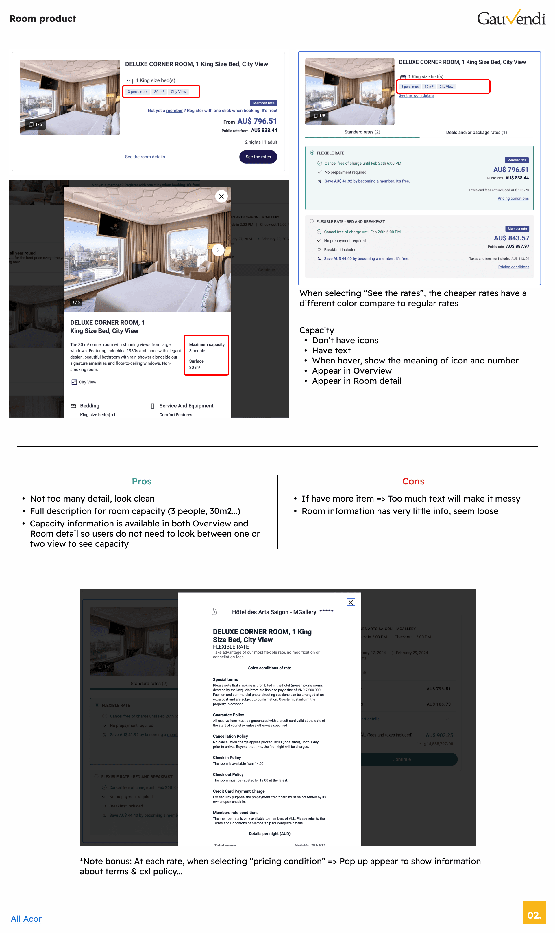 The detailed information about pricing, terms, and CXL policy will not be displayed directly but will be placed in a pop-up for users want to view.