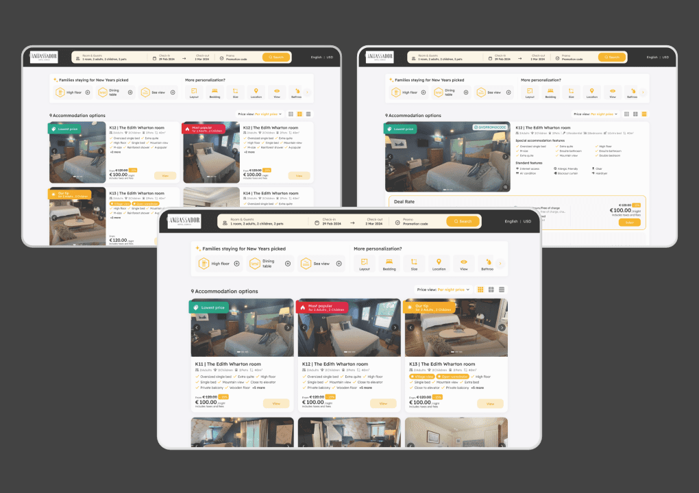 About the hotel industry and a new way to sell room products. The project includes two sites: a platform for admin and ISE for end-users.